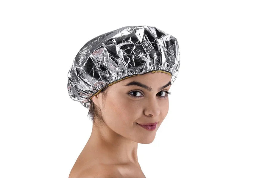 Dompel Touca Metalizada Com Isolamento Térmico: touca profissional com revestimento metalizado, ideal para tratamentos capilares que requerem isolamento térmico, potencializando os resultados.