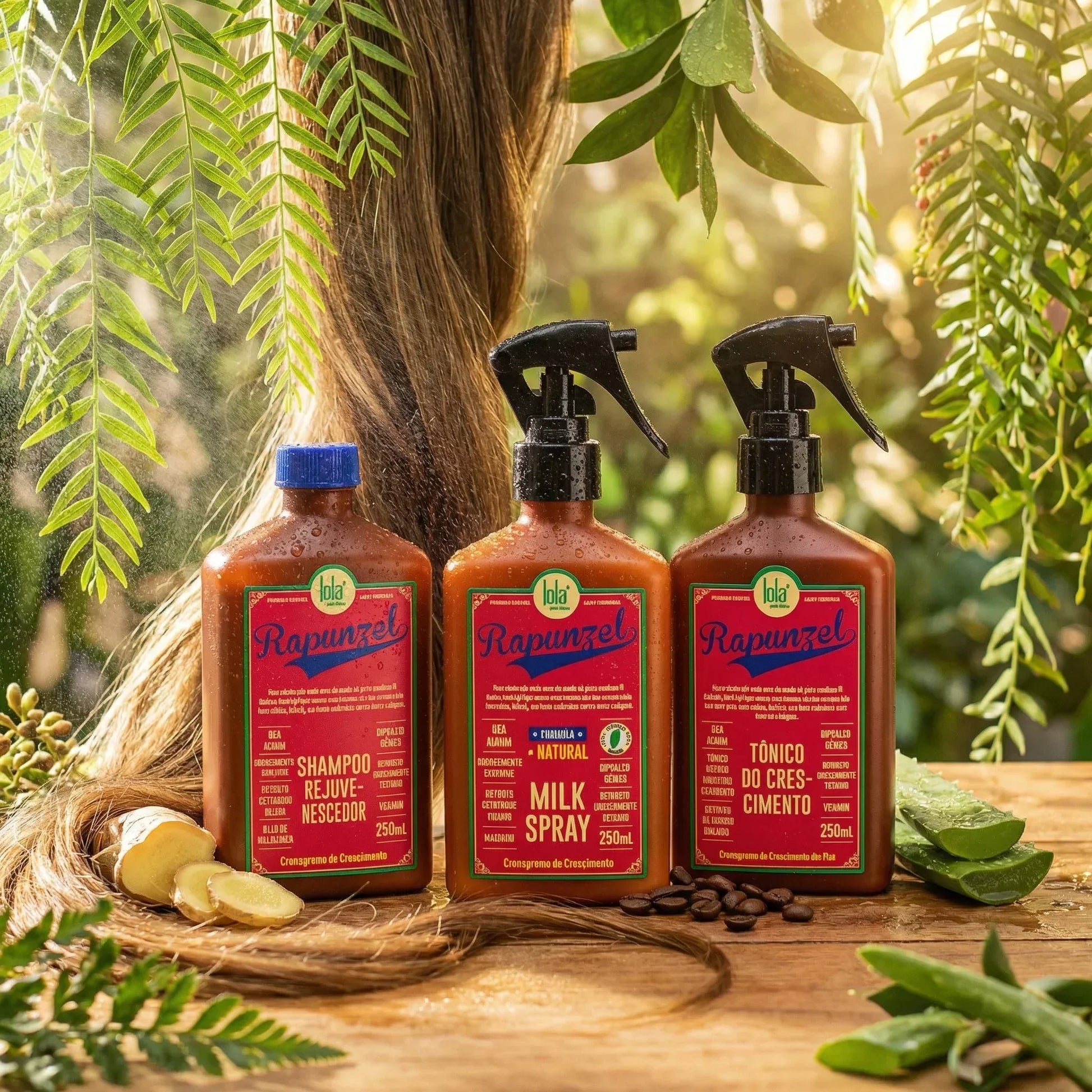 O Lola Super Pack Rapunzel é o cronograma de crescimento para quem deseja fios longos, fortes e visivelmente mais saudáveis. Este trio poderoso atua desde o couro cabeludo até as pontas, combatendo a queda precoce e estimulando o nascimento de novos fios. Recupere o volume, a densidade e o brilho natural com um tratamento rejuvenescedor de alta performance botânica.
