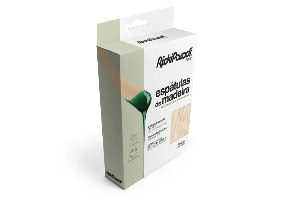 A RickiParodi Espátula de Madeira para Buço 11 cm é ideal para aplicações precisas de cera na área do buço. Fabricada em madeira de alta qualidade, vem em um pacote com 100 unidades, sendo perfeita para uso profissional e pessoal.